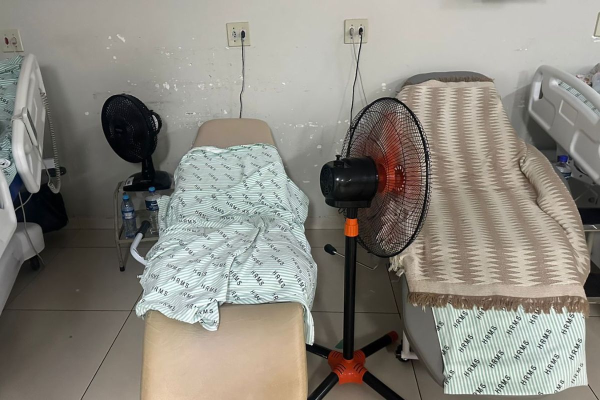 Imagens recebidas pelo portal Primeira Página mostram pacientes e funcionários do Hospital Regional de Mato Grosso do Sul recorrendo a ventiladores portáteis para suportar o calor. O desconforto térmico torna ainda mais delicada a situação na unidade, que também enfrenta superlotação.